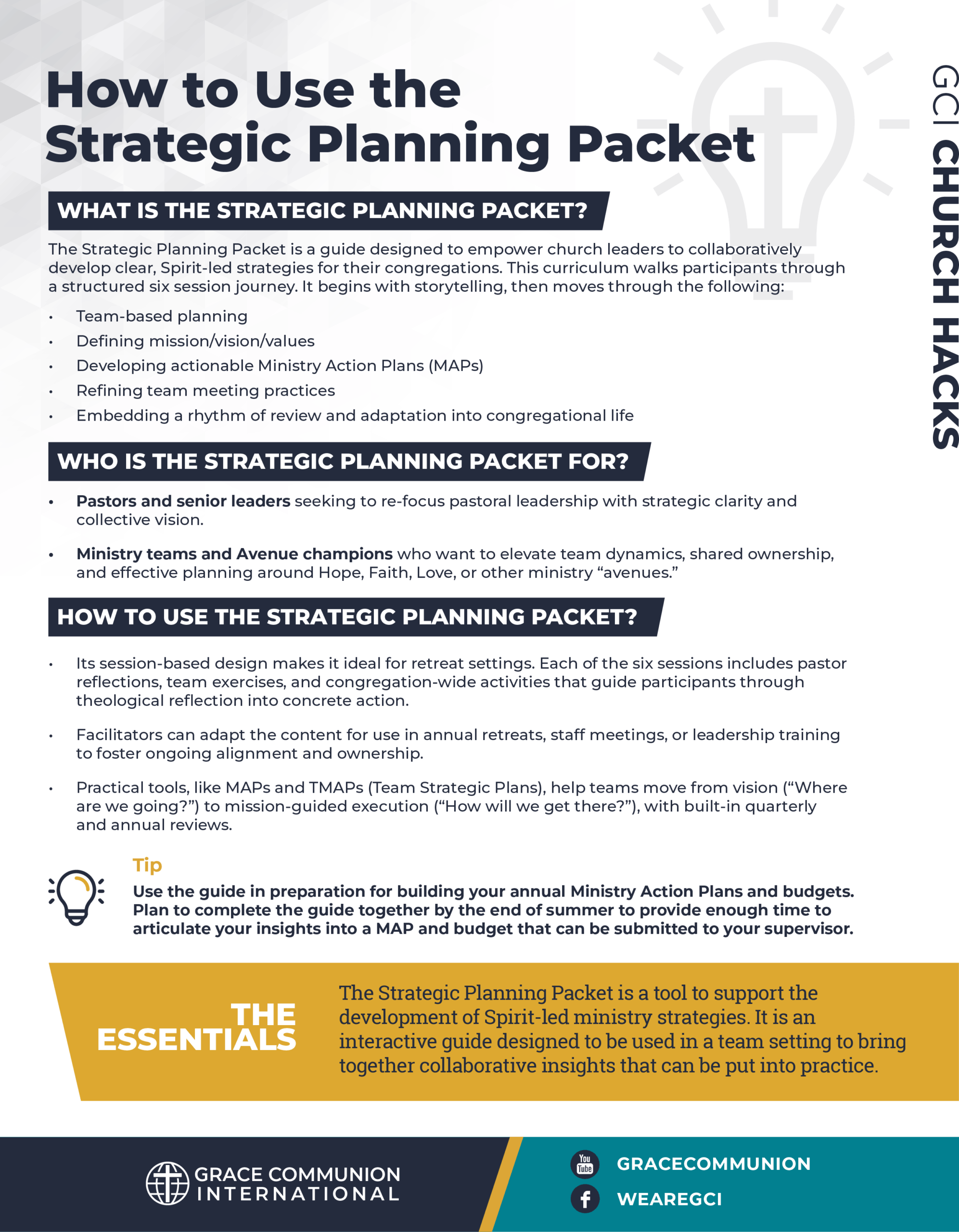 Healthy churches grow from Spirit-led vision and shared participation. As you prepare MAPs and budgets for next year, use the Strategic Planning Packet to turn prayerful discernment into actionable steps. Take this step with your team, engage the process, and move forward with clarity and hope.